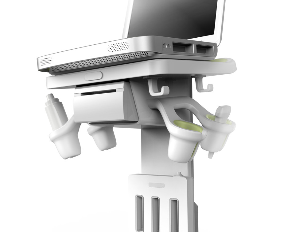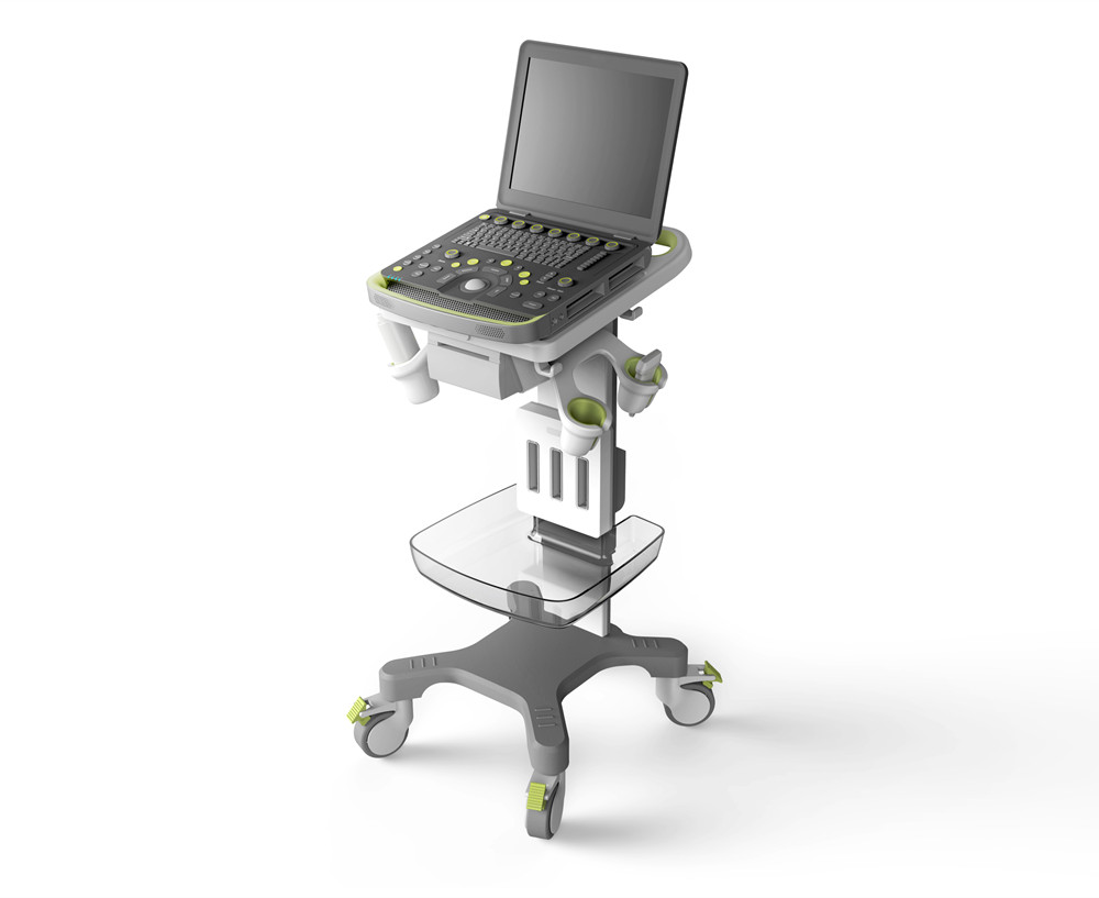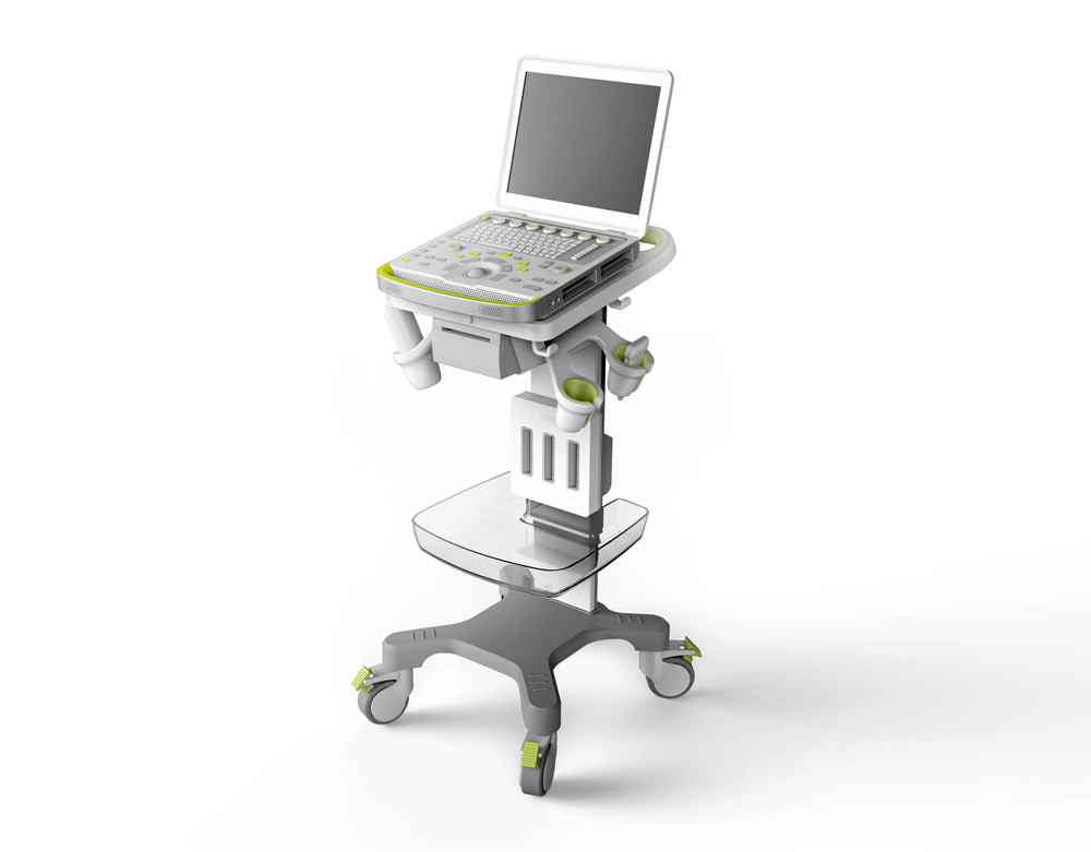 作为华声医疗的首款产品,无限空间为客户创立了全新的产品形象,通过提炼出的黑白为主。搭配橄榄绿的品牌色,结合几何化的简约设计,令此款便携式B超兼具医疗产品的人性化与现代设备的科技感。其中主机部分与台车部分运用统一的设计语言,完美融合,透过整体的造型及颜色,传达出“生命之树”的隐喻,完美的契合了客户对该产品的定位,为其接下来的系列产品树立了标志性的设计语言及产品基因。成为便携式B超市场又一款具有竞争力的产品。