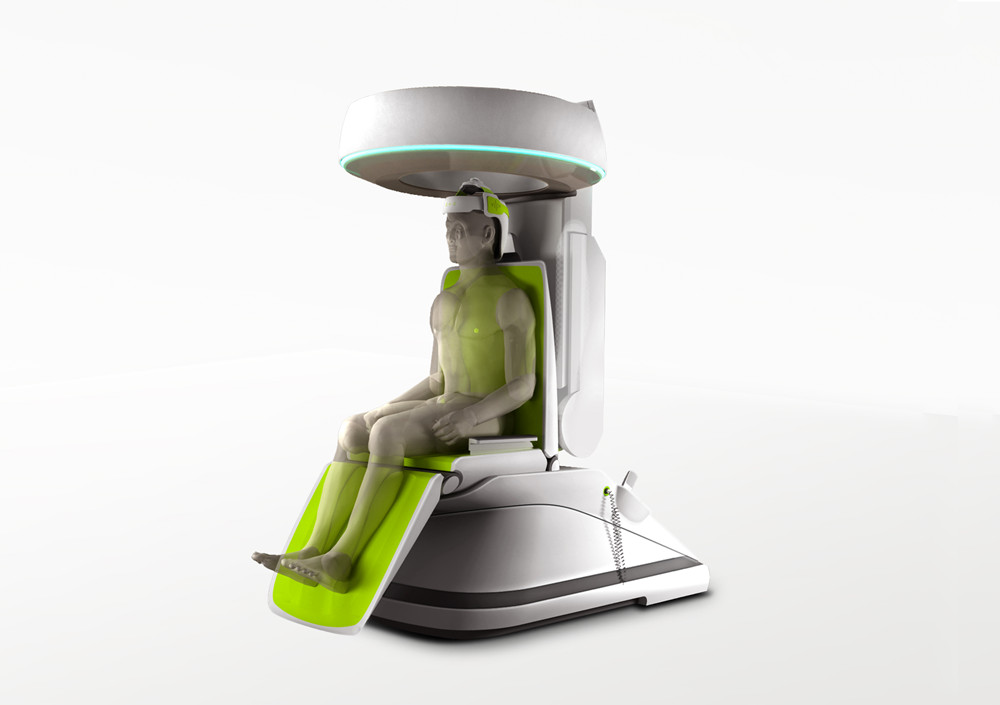 基于我们在医疗领域多年的机械设计经验,我们构想出独创的头颈部PET系统,高度集成化的电气控制与结构形式,作出这样结构轻巧的设计,把PET这种高端分子成像系统引入更高一层的研究领域,由于它的紧凑的结构和灵活的体位控制,可以为患者提供多体位的治疗和人性化的成像控制过程,人体和头部一起向下从90-0度的变化,提供给科研机构由垂直到水平变化过程中动态的患者脑部活动状态和病灶反应,便于进一步的跟踪和治疗方案的展开。